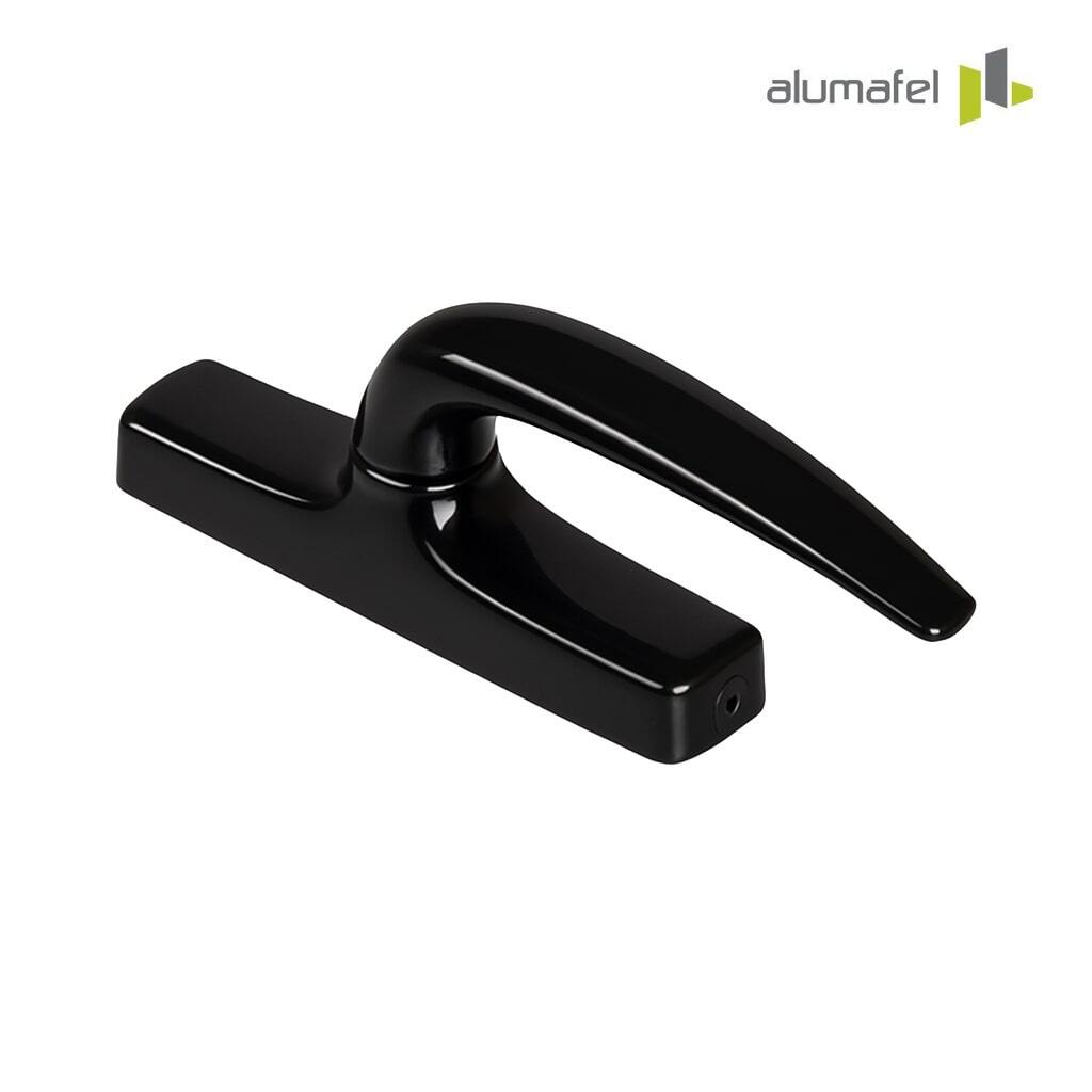Maneta ALUMAFEL para puertas y ventanas con apertura hacia el exterior, diseñada para su instalación indistinta en configuraciones de apertura a izquierda o a derecha.