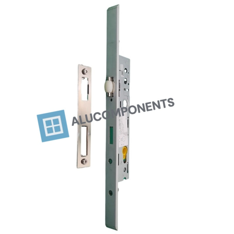 Cerradura 3 puntos con rodillo TECHNAL para puertas de la Serie SOLEAL PY 55 de TECHNAL. Indicada para manillas con cuadradillo de 8 mm.