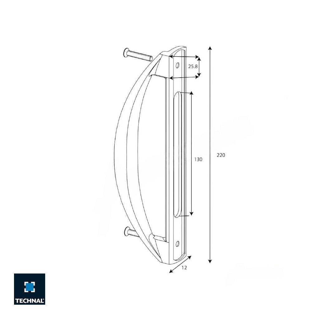 Tirador original TECHNAL para correderas Topaze GB y Topaze GBi, fabricado en aluminio lacado de alta calidad.